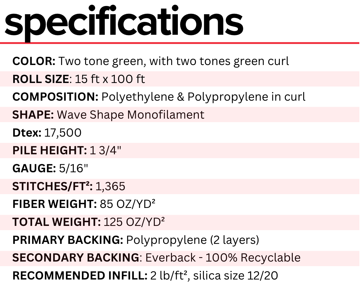 Manufactured under the sustainability standards of our Reconnect collection, this grass features EVERBACK backing made from 100% recyclable PE polyolefins. This model offers exceptional resilience and recovery, making it the ideal choice for anyone seeking a tall, supreme, and long-lasting lawn.
