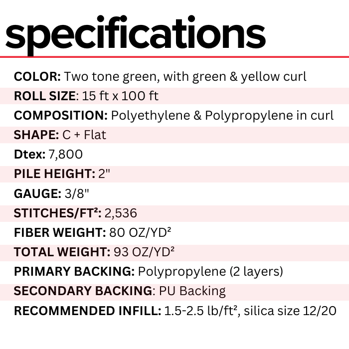 Our newly enhanced PLUSH features a blend of SoftMax monofilament fibers and curly fibers for optimal root effect, ensuring the monofilament fibers stay upright for a consistently lush appearance.